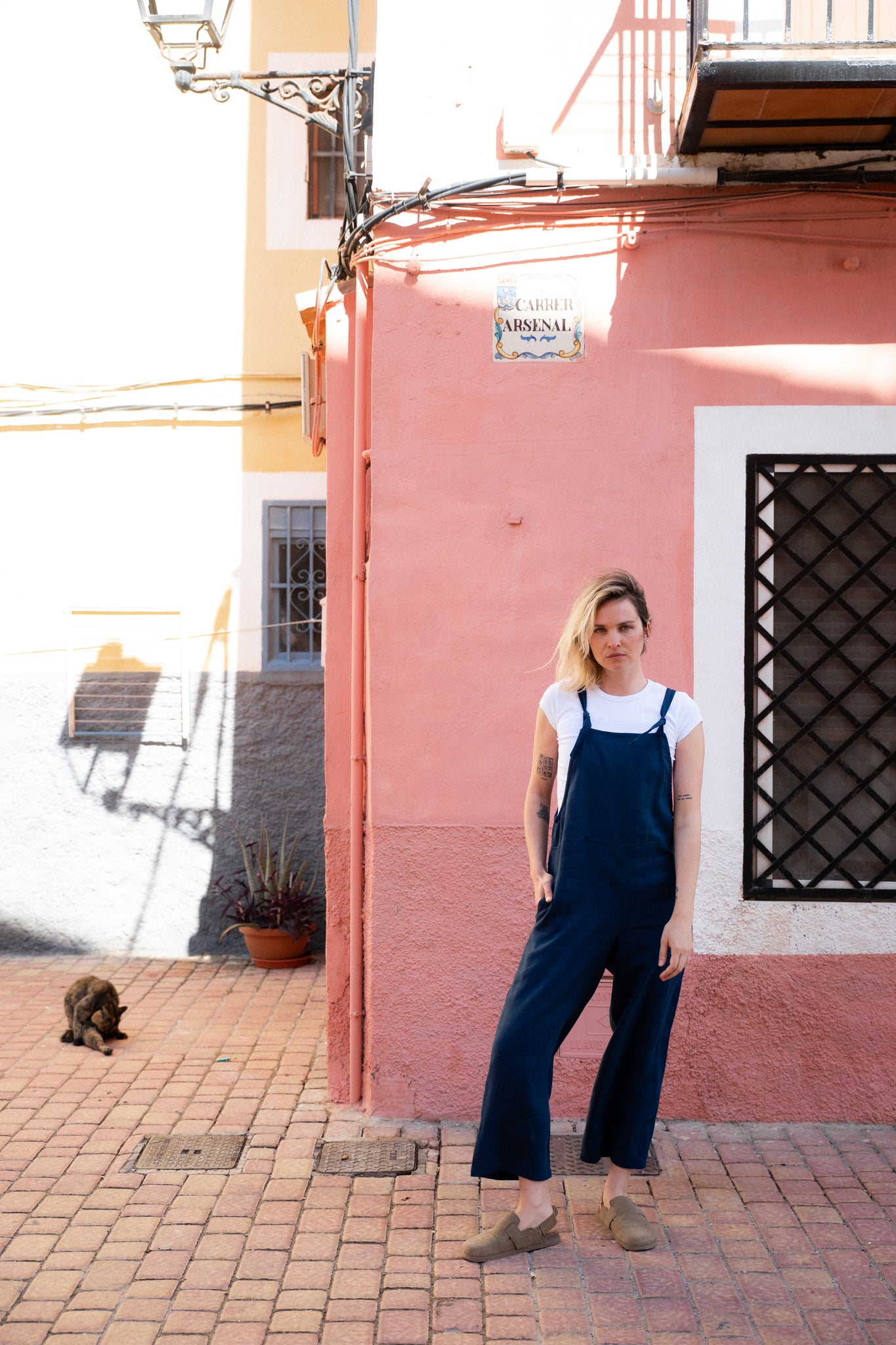 Linen dark blue color jumpsuit with adjustable straps Paloma – Adult Jumpsuit, Premium Loungewear